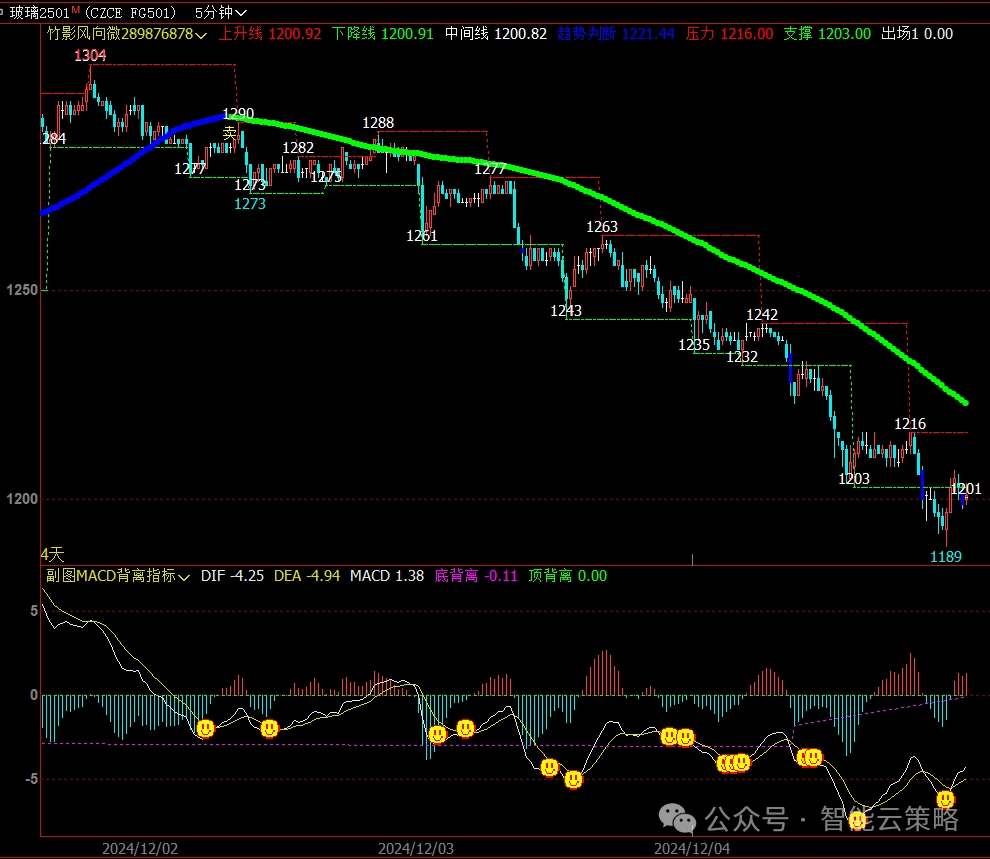 期货玻璃5分钟:(搭配艾云策略主图:竹影风向)