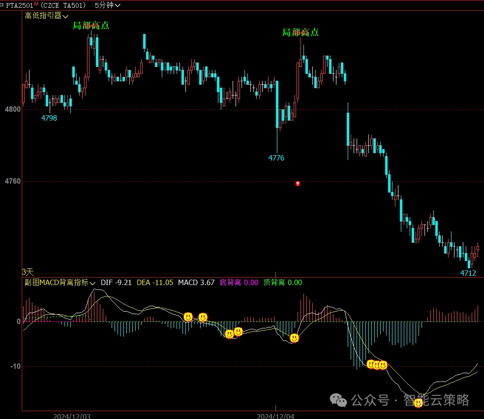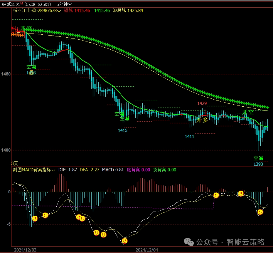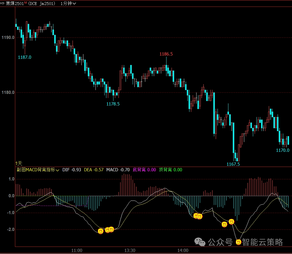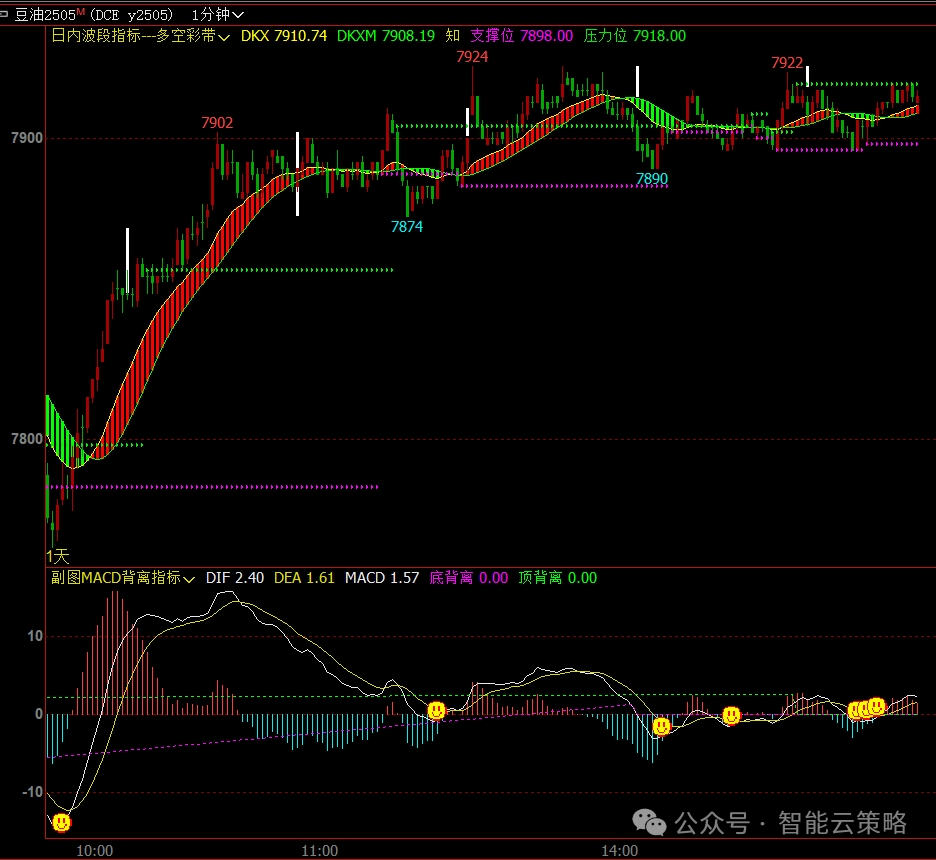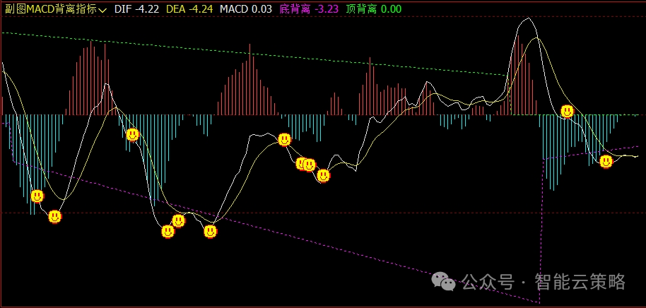 不久前,有位做期货的朋友看了我们公众号“智能云策略”前期发表的MACD背离的编程文章,说还是找不到感觉。今天终于整理了,却找不到是哪一位了,没法私发给你,希望在公众号上你能看到今天分享的副图源码---MACD背离指标洞察期货市场动向。